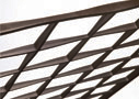 紋様をイメージさせる幾何学的なパターン。格子の断面形状を菱形とし、トラディショナルな印象の中にも上品さ、シャープな印象をもたせた。色味の選択によってモダンにも和風にも多様な表情を持つ。
